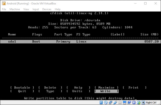 Vous devrez taper « oui » et appuyez sur Entrée sur l’écran suivant pour vérifier que vous souhaitez écrire la table de partition sur le disque.