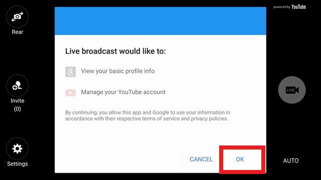 5. Autorisez Live Broadcast à utiliser votre compte YouTube.
