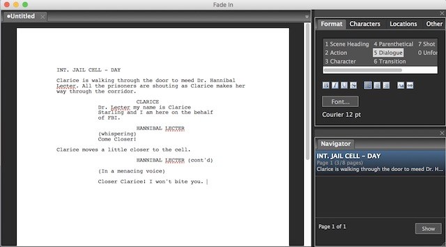 Je ne prétends pas être un expert en écriture d’écran, mais j’ai une bonne expérience dans ce domaine. Pour la plupart, j’ai trouvé FadeIn pour être la meilleure application de scénarisation là-bas. L’interface est facile à comprendre et vous pouvez commencer dès que vous lancer l’application. Vous apprendrez les fonctionnalités professionnelles en cours de route. La meilleure partie de FadeIn est son expérience de typage prédictive. La plupart du temps, il apparaît correctement si vous êtes sur le point d’écrire un titre de scène, un personnage ou un dialogue. Dans les cas, s’il ne parvient pas à prédire correctement, vous pouvez utiliser la touche Tab pour simplement passer d’une option à l’autre. Cela rend le formatage de votre scénario très simple. Notre thème principal pour choisir des applications aujourd’hui a été la sélection des applications qui vous aident à obtenir vos mots sur le papier et FadeIN fait exactement cela.