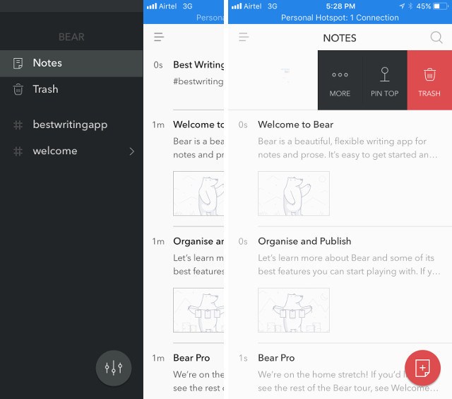Juste au moment où vous commencez à penser, il ne reste plus qu’à innover dans une certaine catégorie d’application, il y a un nouveau joueur qui change le jeu et Bear a gagné sa place parmi eux. Il combine la prise de notes et la petite écriture en prose et les met dans une interface qui n’est pas seulement amusante à utiliser, mais aussi très efficace. C’est peut-être pourquoi Bear a remporté le meilleur prix de conception d’Apple pour 2017. Tout comme Ulysses, l’interface est divisée en trois volets. L’un abrite vos groupes, l’une de vos notes et l’autre comme panneau d’édition. Cependant, la structure organisationnelle d’Bear est un peu différente d’Ulysses. Vous ne créez pas de dossier plutôt que vous organisez vos notes à l’aide de balises. Toute note peut avoir un certain nombre de balises.