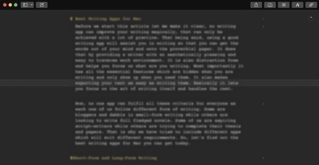 Avant de commencer à parler des applications d’écriture pour Mac, permettez-moi de préciser, aucune application d’écriture ne peut améliorer votre écriture magique, ce qui ne peut être réalisé que très pratique. Cela dit, l’utilisation d’une bonne application d’écriture vous aidera par écrit, afin que vous puissiez avoir les mots hors de votre esprit et sur le document proverbiale. Une bonne application d’écriture fait cela en fournissant à un écrivain un environnement de travail esthétiquement agréable et facile à traverser. Il est également sans distraction et vous aide à vous concentrer sur ce que vous écrivez. Plus important encore, il dispose de toutes les fonctionnalités essentielles qui sont cachées lorsque vous écrivez et ne s’affichent que lorsque vous en avez besoin.Cela rend également l’exportation de votre texte aussi simple que de les écrire. Fondamentalement, il vous permet de vous concentrer sur l’art de l’écriture et de gérer le reste.