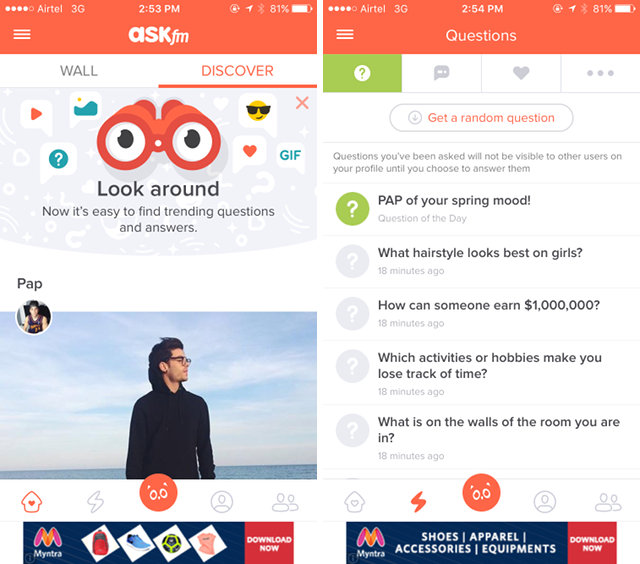 ASKfm est l’application du tableau des questions anonymes de Ask.fm. Alors que vous devez vous connecter à l’application, et ce n’est pas vraiment anonyme, sauf pour les questions posées, l’application a encore beaucoup de traction, grâce au grand nombre de personnes qui l’utilisent pour avoir Des conversations intéressantes avec des gens, et faire beaucoup plus. Vous pouvez créer un profil, puis le partager avec des amis. Si vous voulez trouver de nouvelles personnes, vous pouvez le faire avec la recherche, en entrant vos intérêts; L’application affiche une liste d’utilisateurs qui partagent les mêmes intérêts que vous.