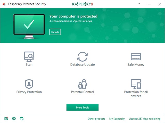 Kapersky Internet Security est une autre solution très populaire là-bas et, comme d’autres solutions antivirus populaires, Kaspersky dispose également de fonctionnalités anti-ransomware. Le logiciel apporte une protection contre différentes menaces Internet, y compris le ransomware, tout en protégeant votre vie privée et vos informations personnelles, en cas d’attaque. La solution de sécurité « primée » vous informe également des sites Web peu fiables, de sorte que Ransomware ne se propage pas sur votre système.