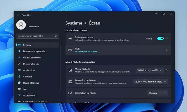 Activer l’éclairage nocturne sur Windows 11