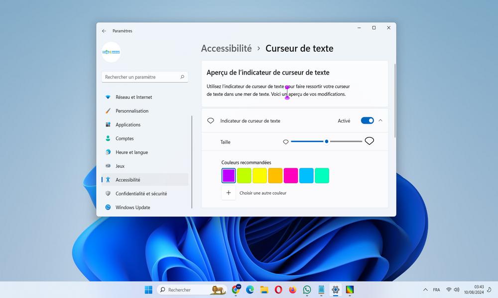 Introduit initialement dans Windows 10 et maintenu dans Windows 11, l’indicateur de curseur de texte ajoute des éléments visuels pour faciliter la localisation du curseur à l’écran, avec des options pour ajuster sa taille et sa couleur.
