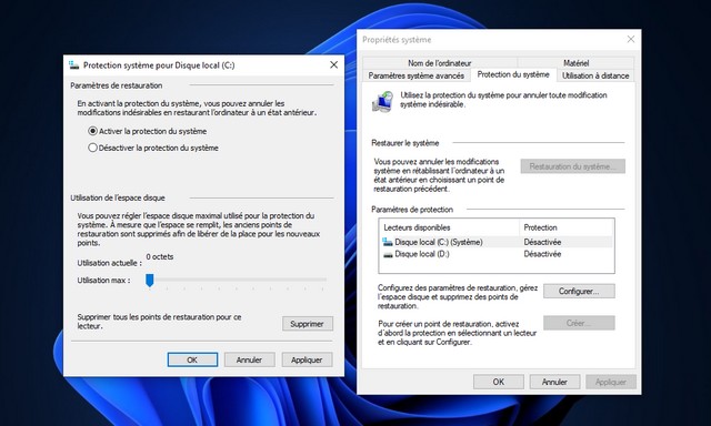Pour activer la protection du système sur Windows 11, procédez comme suit :