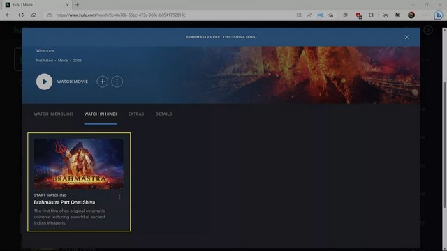 1. Accédez à la page d’une émission ou d’un film sur Hulu dont la version n’est pas en anglais, puis cliquez sur Regarder en (langue).