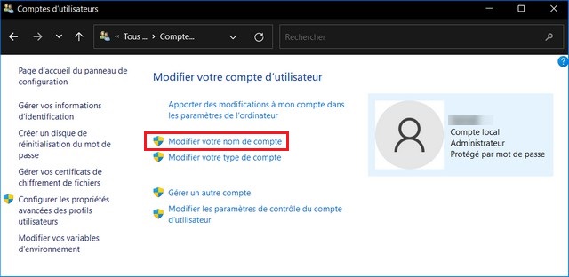 Voici comment modifier le nom d’utilisateur via l’outil de gestion des utilisateurs et des groupes locaux :