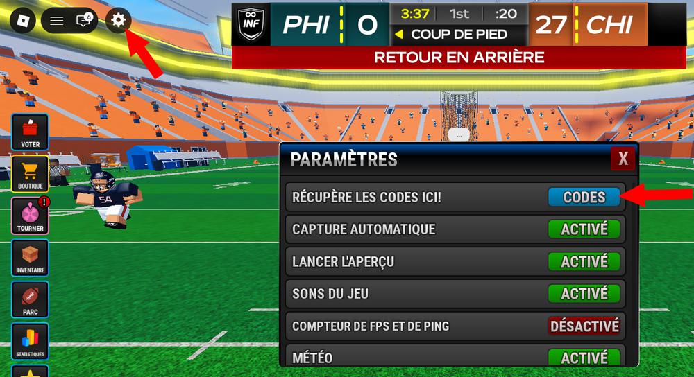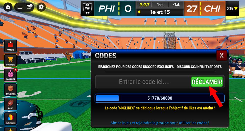 Obtenez facilement des récompenses avec les codes Football Legends. Aimez le jeu et rejoignez le groupe Roblox Infinity Legends avant de les activer. Suivez ensuite ces étapes :
