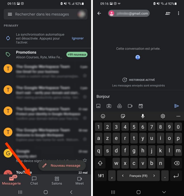 Une fois que vous avez terminé ces étapes, redémarrer votre application Gmail et vous devriez voir l’onglet « Chat » en bas de l’écran.