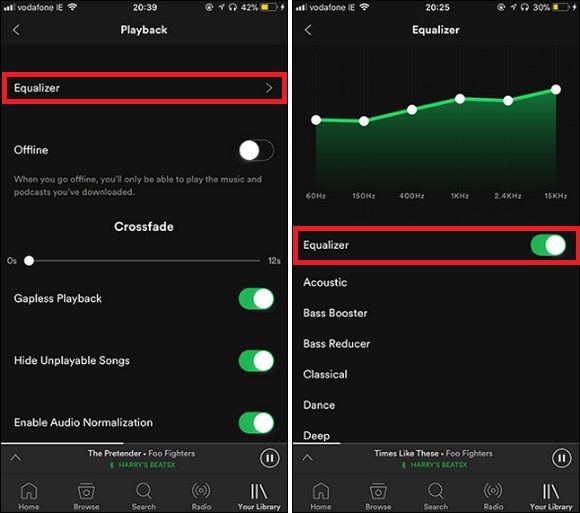 Ensuite, sélectionnez Égaliseur et assurez-vous que l’interrupteur est activé.