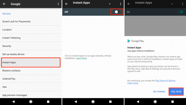 Cela devrait fonctionner sur la plupart des smartphones ou tablettes qui fonctionnent sous Android 7.0 Nougat. Pas seulement les téléphones Nexus ou Pixel. Ou ce sera bientôt. Tout ce que vous devez faire est d’activer les applications instantanées Android dans les paramètres de l’onglet Google, et naviguer sur le Web.