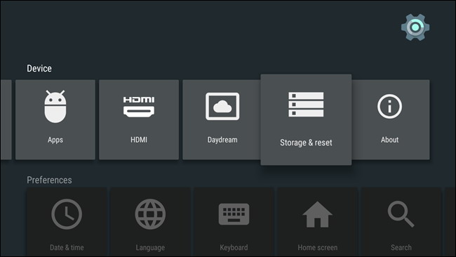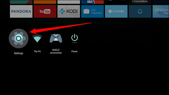 Lorsque le lecteur est branché, vous voudrez sauter dans le menu Paramètres de Android TV – faites défiler vers le bas en bas de l’écran et cliquez sur l’icône de la roue dentée.
