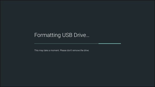 La première chose que vous voudrez faire est de connecter le câble USB OTG s’il est nécessaire, puis brancher votre lecteur. Sinon, il suffit de brancher le lecteur directement: un menu peut apparaître ici (selon votre périphérique ATV particulier), ce qui vous permet de manipuler le lecteur sans problème. Si c’est le cas, sautez quatre paragraphes et commencez par là. Sinon, lisez la suite.