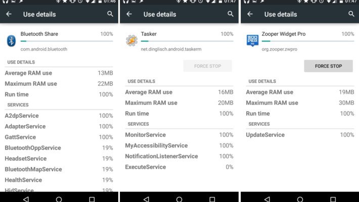 Donc, maintenant, vous êtes équipé de vos outils de diagnostic, mais comment savez-vous ceux à quitter? Toutes les applications d’arrière-plan ne méritent pas de mourir – beaucoup d’entre elles sont importantes pour la fonctionnalité quotidienne de votre appareil. Par exemple, si vous envisagez de fermer les services Google Play, Google Search, Google Keyboard, Google Play Store … en gros, quoi que ce soit avec «Google» dans le nom, vous lâchez probablement le mauvais arbre. Laissez ces gars seul: il est sain pour eux de continuer à faire leurs affaires en arrière-plan.