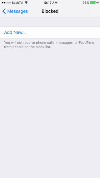 Maintenant que vous savez comment empêcher les personnes de vous envoyer des messages, vous voudrez peut-être savoir comment gérer les personnes que vous avez bloquées. Tout ce que vous avez à faire est d’aller dans Paramètres > Messages > Bloqué. Cette page vous montrera toutes les personnes que vous avez actuellement empêchées de vous envoyer des messages et vous permettra d’ajouter et de supprimer des personnes de la liste.