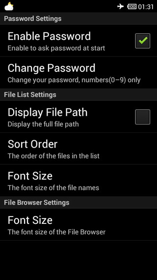 Appuyez sur le bouton Menu, puis sur Paramètres. La première option sera de permettre un mot de passe. Cochez cette case, et vous serez invité à entrer un mot de passe à utiliser. Veillez à ne pas oublier cela, car vous devrez l’utiliser chaque fois que vous démarrez File Hide Expert. Vous ne voulez pas entrer dans une situation où vous ne pouvez pas restaurer les fichiers que vous avez cachés!