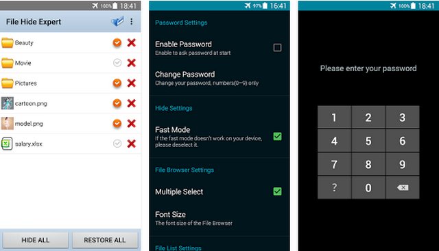 Alternativement, certains peuvent simplement vouloir cacher des fichiers importants ou sensibles sur leur appareil. Bien qu’un mot de passe ou une sécurité d’empreinte digitale soit agréable, une protection de couche supplémentaire est toujours une bonne idée. Notre première et principale suggestion serait File Hide Expert. Il ne dispose peut-être pas de la meilleure interface utilisateur ou de nombreuses fonctionnalités, mais le travail se fait rapidement et facilement.