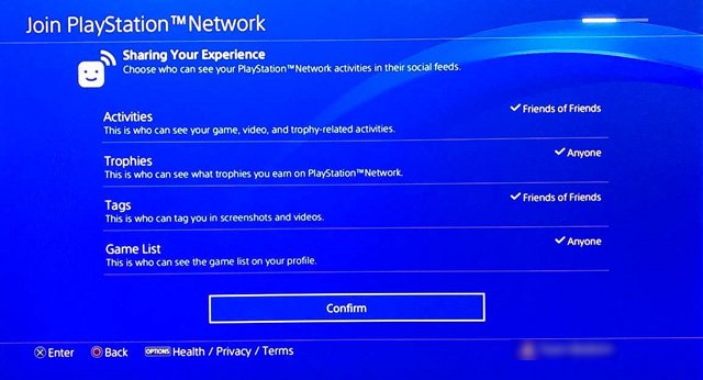 - Après cela, vous pris à plusieurs pages de contrôle de confidentialité, où vous pouvez personnaliser complètement qui peut voir certains détails comme les réalisations, les activités, la liste des jeux sur votre compte PSN.
