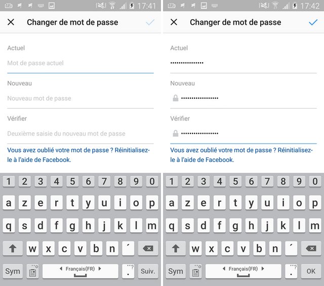 Entrez votre mot de passe actuel et votre nouveau mot de passe deux fois.