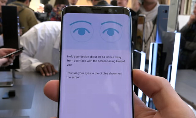 - Pour configurer le Scanner d’iris sur Galaxy Note 8 maintenez votre appareil à au moins 10 ou 12 pouces de l’écran et regardez-le avec les yeux grands ouverts.