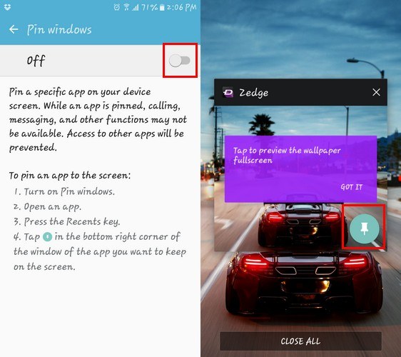 Une autre façon d’avoir un kid-friendly téléphone est en épinglant des applications. Ce que cette fonctionnalité fait est de garder toute l’application que vous définissez dans l’affichage du téléphone, et elle ne peut être supprimée que si vous appuyez longuement sur la touche Recents. Votre enfant n’est pas censé connaître cette dernière partie du cours.