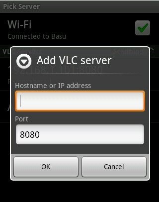 Dans le «Ajouter un serveur VLC» entrez votre adresse IP locale (par exemple 192.168.1.101) et quitter le port par défaut 8080.