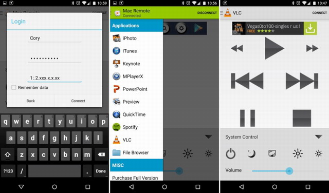Pour commencer, rendez-vous sur le Google Play Store et télécharger Remote for Mac. Maintenant, ouvrez simplement l’application et suivez les instructions à l’écran. Ça explique tout. Plutôt que de faire tous les trucs de serveur fous des années précédentes, il suffit de se diriger vers les préférences du système et de permettre la connexion à distance, donner à l’application votre adresse IP Macbook, et tout est contrôlé via le Wi-Fi. C’est si facile.