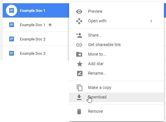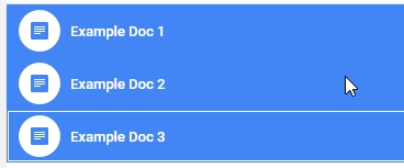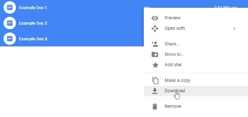 La méthode de téléchargement de lot Google Drive fonctionne de manière identique pour télécharger un document unique. Toutefois, si vous maintenez enfoncée la touche CTRL lorsque vous cliquez sur les fichiers, vous pouvez sélectionner plusieurs fichiers tout à la fois. Les fichiers sélectionnés dans le lot s’allument en bleu lorsque vous cliquez dessus: