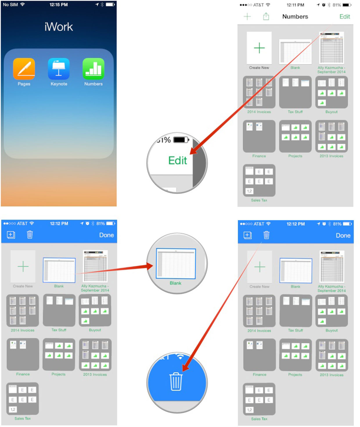 Étape 4: appuyez sur l’icône Trash Can dans le coin supérieur gauche, puis appuyez sur l’option Supprimer dans la fenêtre contextuelle pour supprimer ces documents pour toujours.