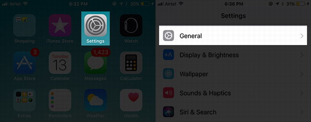 Étape 1: Lancez l’application Paramètres sur votre appareil iOS > Appuyez sur Général.
