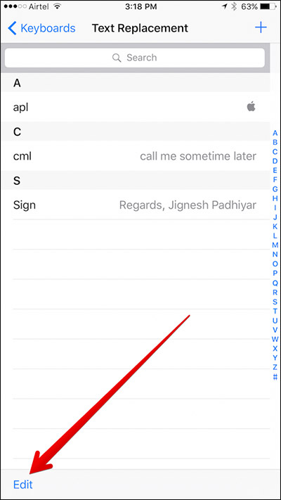 Étape 2: Appuyez sur le raccourci texte que vous souhaitez modifier.