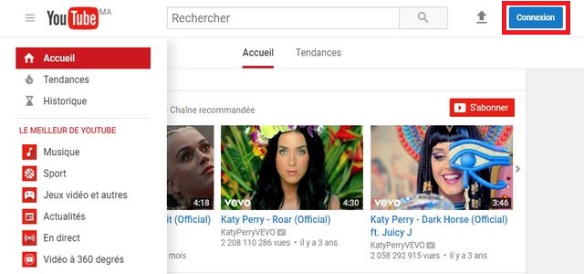 - Tout d’abord, assurez-vous que vous n’êtes pas connecté à un compte Google partout ailleurs sur le même navigateur. Ensuite, allez sur YouTube et cliquez sur « se connecter » en haut à droite de sa page d’accueil.