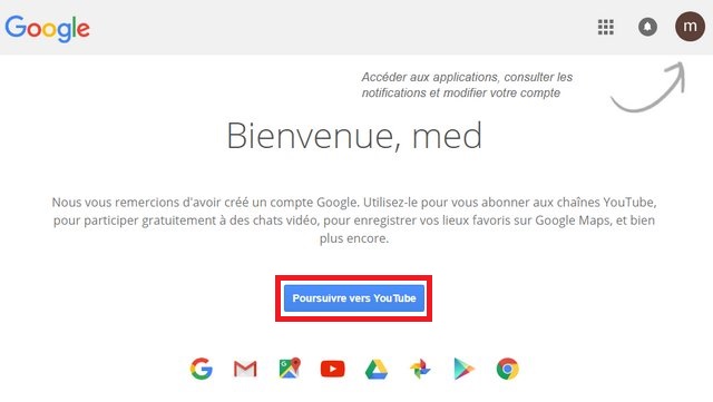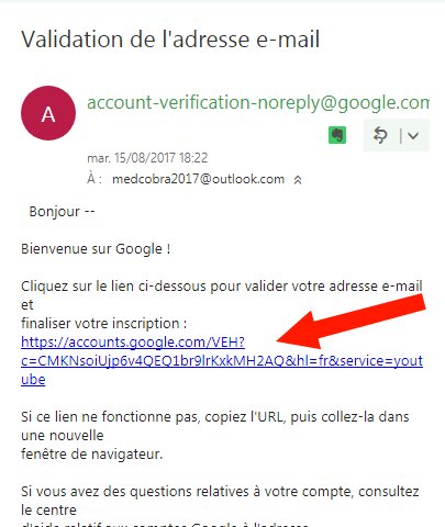 - En cliquant sur ce courriel, vous ouvrez un nouvel onglet contenant un bouton intitulé «Continuer vers YouTube». Cliquez dessus.