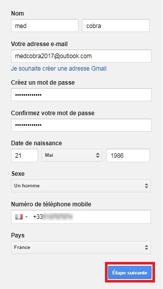 - Vous allez maintenant débarquer sur la page « Créer votre compte Google ». La forme que vous voyez sur cette page sera différente de celle que vous voyez lorsque vous créez un nouveau compte Gmail. La différence – sous votre adresse électronique, vous verrez un lien qui indique J’aimerais une nouvelle adresse Gmail. En cliquant dessus, vous l’emmènerez à la page habituelle et le texte changera en Je préfère utiliser mon adresse courriel. Remplissez ce formulaire avec l’adresse électronique que vous souhaitez utiliser pour YouTube, puis cliquez sur Prochaine étape.