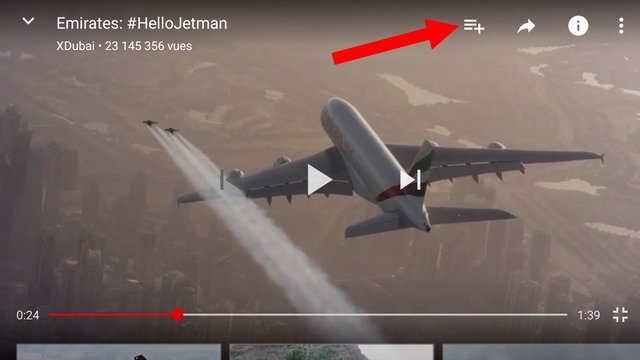 1. Une fois la liste de lecture créée, appuyez sur l’ icône ‘ +’ affichée en haut de la vidéo lue.