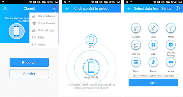 Pour transférer vos données complètes de l’ancien téléphone à votre nouveau brillant sur le WiFi, l’utilisation de l’application CLONEit peut être une bonne option. C’est une application entièrement gratuite et ne vient pas avec des annonces pour vous ennuyer. Cependant, en fonction du fabricant de votre téléphone, cela peut ne pas fonctionner pour vous. Ne vous inquiétez pas, dans la plupart des cas, cela devrait fonctionner.