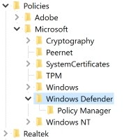 Le registre du système s’ouvrira. Sur la gauche, accédez au dossier suivant: « HKEY_LOCAL_MACHINE -> SOFTWARE -> Politiques -> Microsoft -> Windows Defender. » Vous pouvez voir un dossier après que Windows Defender s’appelle « Policy Manager ». Ne cliquez pas sur ce dossier; À la place, maintenez le Windows Defender en surbrillance comme l’image suivante.