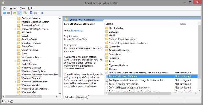 Cela signifie que vous ne pouvez pas utiliser cette méthode pour désactiver Windows Defender. Dans ce cas, vous voudrez utiliser la méthode de registre ci-dessus qui fonctionne pour chaque édition.