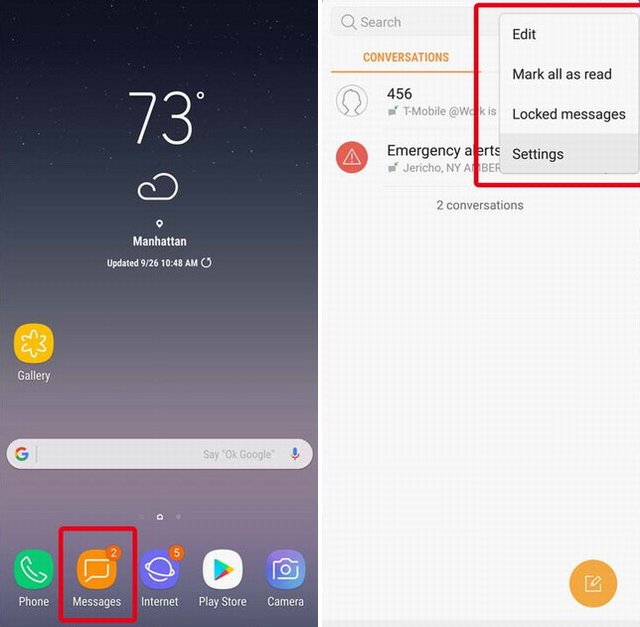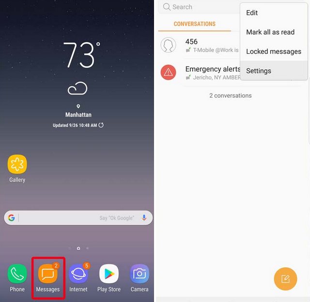 1. Ouvrez l’application Messages, et accédez à des paramètres en appuyant sur les trois boutons dans le coin supérieur droit.