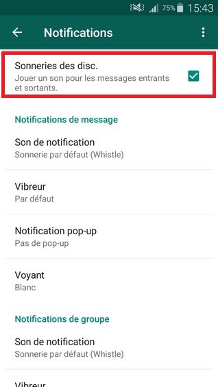 Désactiver les notifications dans WhatsApp