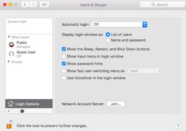 S’il vous plaît noter que si votre compte est protégé par un mot de passe, vous devez cliquer sur l’icône du cadenas et entrez votre mot de passe de compte d’abord, sinon l’option est grisée.