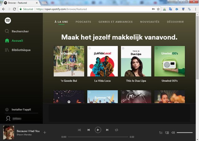 Si vous utilisez votre propre ordinateur, c’est probablement une bonne idée de télécharger l’application de bureau. Cependant, si vous empruntez un ordinateur et que vous souhaitez écouter des morceaux, ou si vous utilisez un Chromebook, le Spotify Web Player est génial. c’est une bien meilleure façon d’écouter de la musique que YouTube.