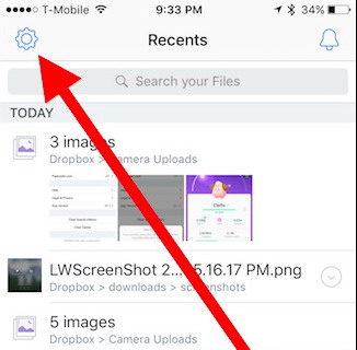 Pour effacer le cache Dropbox, ouvrez l’application Dropbox sur votre iPhone et appuyez sur l’icône d’engrenage dans le coin supérieur gauche.