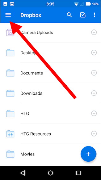 Si vous utilisez un appareil Android, ouvrez l’application Dropbox et appuyez sur les trois lignes dans le coin supérieur gauche.