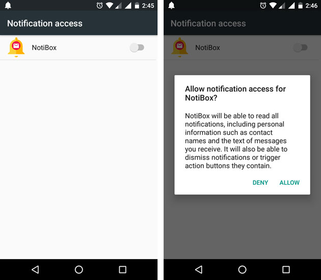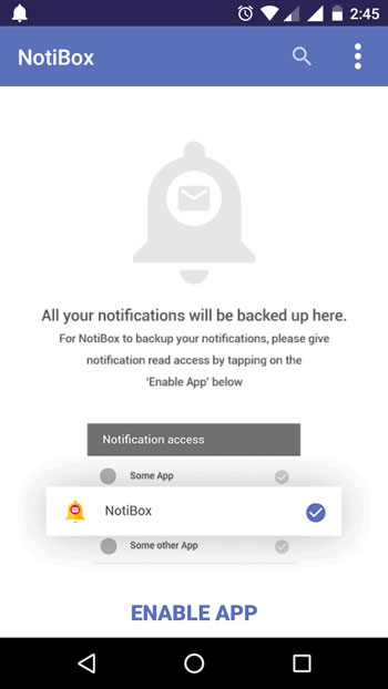 Pour utiliser NotiBox, commencez par le télécharger et installez-le à partir de Google Play Store. Après avoir ouvert cette application, vous devrez passer par quelques pages de base pour mieux la connaître. Sur le dernier écran, vous pouvez trouver une option appelée ENABLE APP.