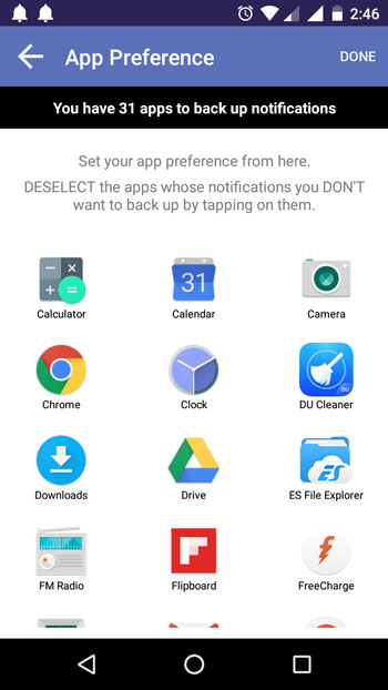 Ensuite, vous obtiendrez toutes les applications qui peuvent envoyer des notifications. Vous pouvez également exclure toute application si vous le souhaitez. Appuyez simplement sur et maintenez l’application à exclure.
