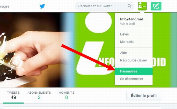 Pour supprimer votre compte, visitez le site Web de Twitter dans votre navigateur web-vous ne pouvez pas utiliser le smartphone app et vous connecter à votre compte. Cliquez sur votre compte image de l’utilisateur et sélectionnez Paramètres pour accéder à votre page des paramètres de compte.