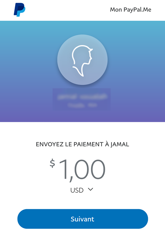 Pour utiliser PayPal.me vous devez enregistrer votre nom comme l’adresse, et vous aurez un lien unique que vous pouvez utiliser pour demander le paiement. Le lien ressemblera à ceci: PayPal.me/username.
