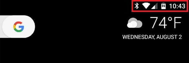 Tout d’abord. Parlons de ce qu’est la barre d’état. Le haut de l’interface principale de votre téléphone Android est séparé en deux zones définies: la barre de notification et la barre d’état. Le premier est l’endroit où toutes vos notifications sont hébergées au fur et à mesure qu’elles entrent, montrées simplement comme des icônes pour vous faire savoir qu’il y a quelque chose qui a besoin de votre attention. Nous ne ferons rien à cette «demi» du bar.